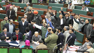All MLAs of BJP, NPP and JSM were also on their feet and indulged in massive shouting demanding setting up of Delimitation Commission to increase the Assembly seats of Jammu.