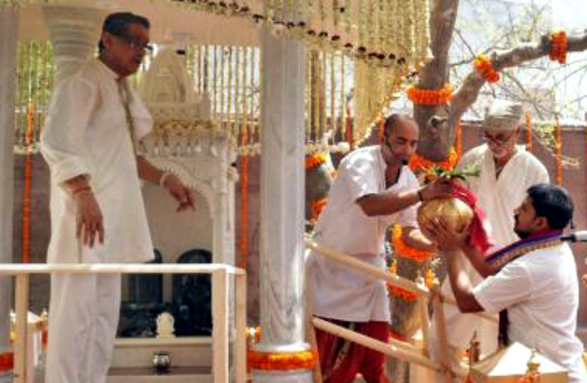 Dr. Satpathyji made offerings to the sacred fire of the hawan, amid chanting of 108 the names of MaaKheer Bhawani. Thereafter, customary Abhishek, Panchsnaan, Alankaran, Shringaar and Ashtottar Shat Naam Archana were offered. As desired by Dr. Satpathy Ji, the Aarti was collectively done by the assembled devotees. In Kashmir, MaaKheer Bhawani temple is situated over a spring in the village of Tulmul in Ganderbal.