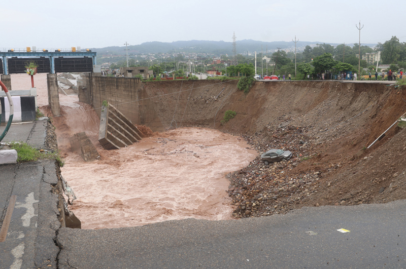 Tawi bund near Bikram Chowk adjoining temple has suffered damage due to heavy flood while a portion of approach road of 4th Tawi bridge has caved in. The movement of vehicles has been stalled. SKUAST- Chatha complex and GGM Science College Jammu remained submerged in water on the second day while many low lying areas of the city were also water logged. The city roads and lanes have suffered massive damages and many drains have washed away. Similar reports have been received from Kathua, Samba, Udhampur and some other areas.