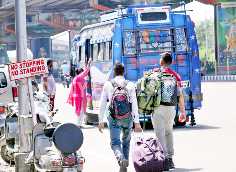 Matador takes a break to carry passengers at ‘No Stop’ zone at Vikram Chowk in Jammu.