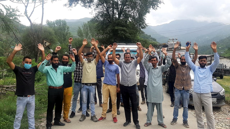 RAJOURI, July 5: The members of Matador/Sumo Union of Thanna Mandi led by its president, Basharat Khan staged a protest at Thanna Mandi town against the apathy of administration for not fixing the fare of Rajouri- Thanna Mandi route.