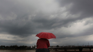 A man walks with an umbrella as clouds hover over the sky in Jammu on Friday.          —Excelsior/Rakesh