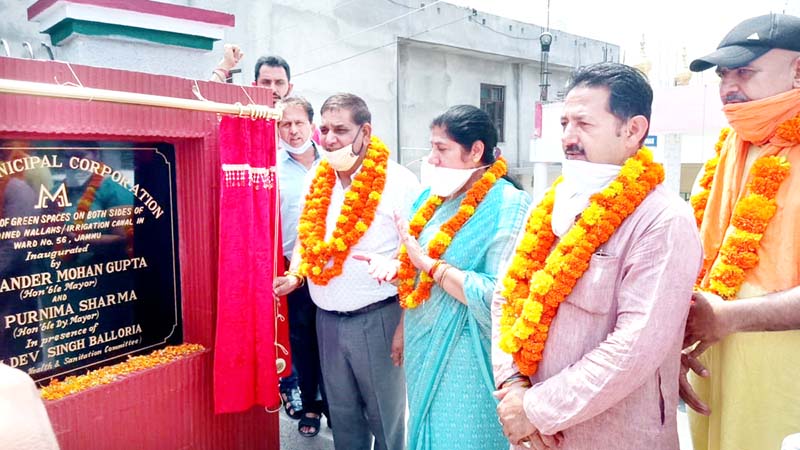 JAMMU, July 3: Continuing the drive to provide better development and civic amenities to the people of Jammu, Chander Mohan Gupta, Mayor, Jammu Municipal Corporation (JMC) today inaugurated green spaces/parks on both sides of irrigation canal at Gangyal area of Ward number 56.