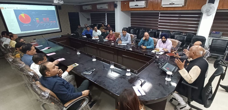 Mayor Jammu, Rajinder Sharma chairing a meeting at Jammu on Friday.