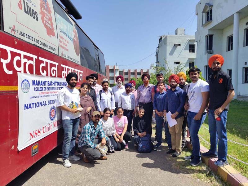 JAMMU, May 19: Mahant Bachittar Singh College of Engineering & Technology (MBSCET) here today in collaboration with J&K Thalassemia Welfare Society and Guru Nanak Langar Mission organized a blood donation camp.