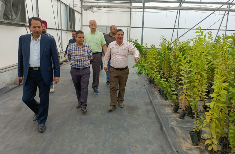 Later, both Director Horticulture Kashmir and Director Horticulture Jammu visited the Government Mega Fruit Plant Nursery at Chakrohi spread over an area of 805 kanals. The MD inspected the mother orchards of Mango, Guava, Citrus fruit plants and the established as well as under construction protected cultivation structures viz: Hi-Tech poly houses, Screen houses, Insect-proof net houses, Naturally ventilated poly houses & Shade net houses.