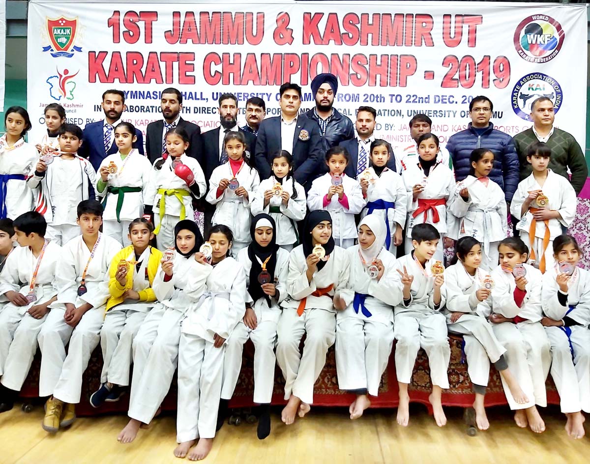 Medal winning Karatekas posing along with chief guest and other dignitaries in Jammu. By Daily Excelsior - December 21, 2019 Share FacebookTwitterWhatsAppPinterestLinkedinCopy URLTelegramEmailTumblrReddItPrintKoo Medal winning Karatekas posing along with chief guest and other dignitaries in Jammu. Medal winning Karatekas posing along with chief guest and other dignitaries in Jammu. Follow our WhatsApp channel