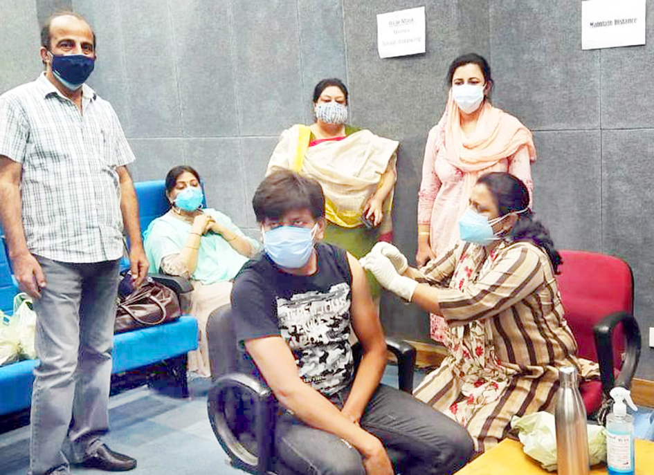 Media person being inoculated at DIPR office in Jammu on Wednesday.