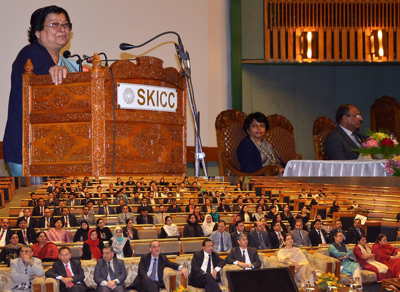 Chief Justice Gita Mittal speaking at the concluding function of 3-day State-level Mediation Workshop at SKICC on Sunday.