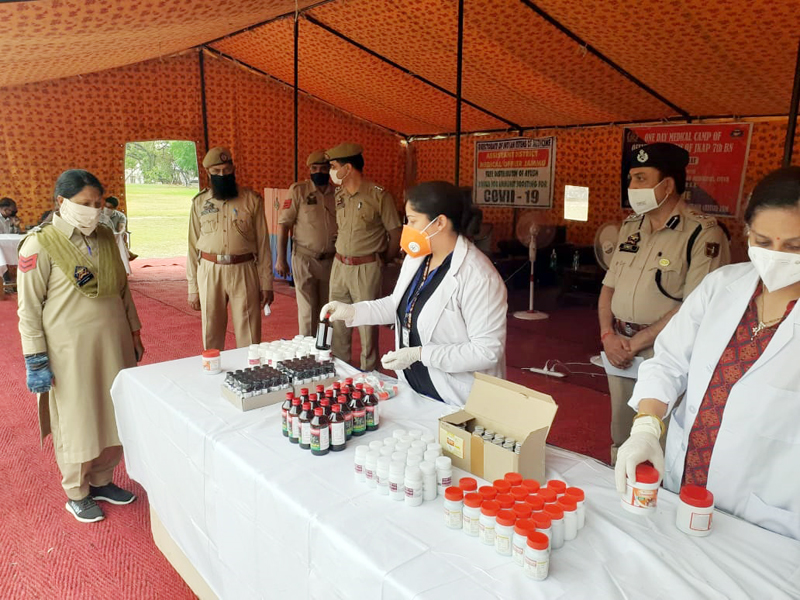 JAMMU, June 11: JKAP 7th Battalion headed by its Commandant Suneel Raj (SSP) in collaboration with an AYUSH team organized a medical camp today at Battalion Headquarters APC, Channi Himmat Jammu, for briefing of officers and jawans of this Unit who are continuously performing COVID-19 duties as well as Law & Order duties in Jammu province.