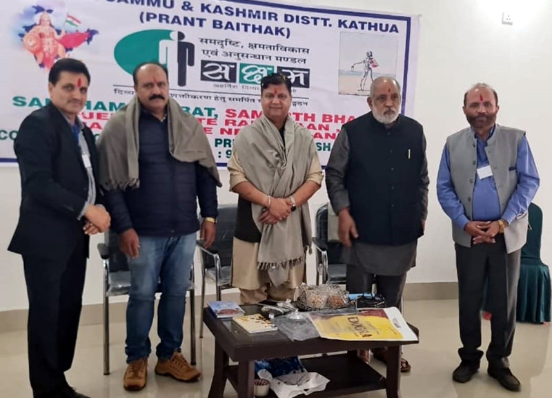 The meeting began with the lighting of ceremonial lamp by Abhay Pargal Gupta, national joint secretary, Saksham; Swami Vishwanathan, RSS Pracharak and Incharge North India and O.D Attri, district president Saksham, Kathua.