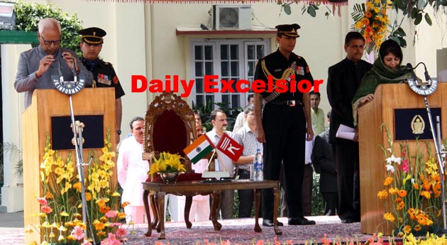Mehbooba Mufti taking oath as the first woman CM of Jammu and Kashmir…Excelsior\Rakesh By Daily Excelsior - April 4, 2016 Share FacebookTwitterWhatsAppPinterestLinkedinCopy URLTelegramEmailTumblrReddItPrintKoo Follow our WhatsApp channel