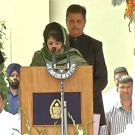 Mehbooba Mufti taking oath as the first woman CM of Jammu and Kashmir By Daily Excelsior - April 4, 2016 Share FacebookTwitterWhatsAppPinterestLinkedinCopy URLTelegramEmailTumblrReddItPrintKoo Follow our WhatsApp channel