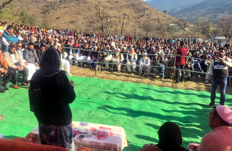 PDP chief Mehbooba Mufti addressing a condolence meeting of party colleague Sardar Rafeeq Khan at Mendhar.
