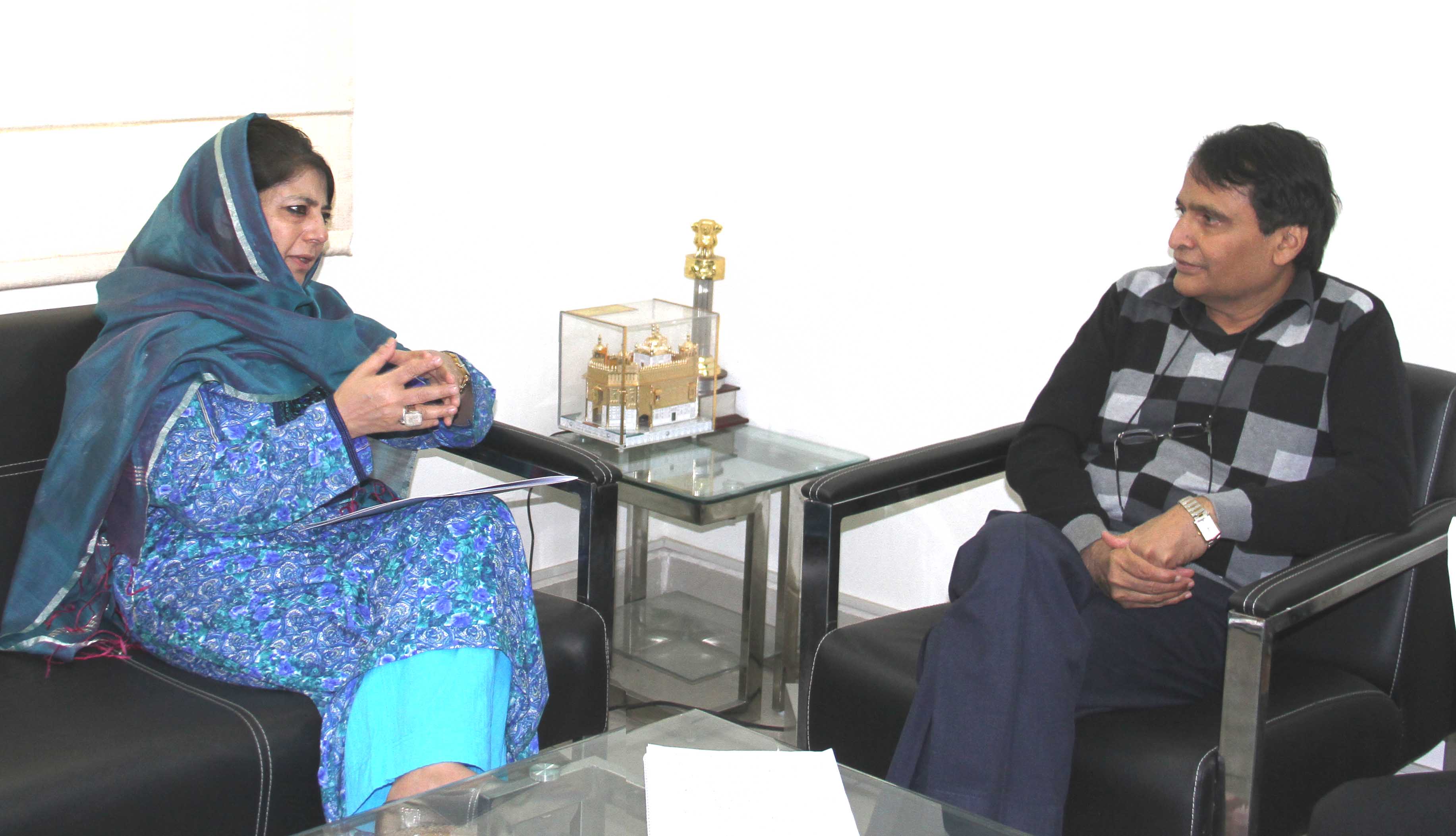Interacting with Minister for Railways, Suresh Prabhu here today, the Chief Minister said Jammu & Kashmir has been bestowed with huge tourism potential and varied and quality handicrafts but due to inadequate linkages to potential buyers and customers the market potential has not yet been properly tapped. She said Indian Railways with its extensive networks and customer base could become a game-changer for the State in this connection.
