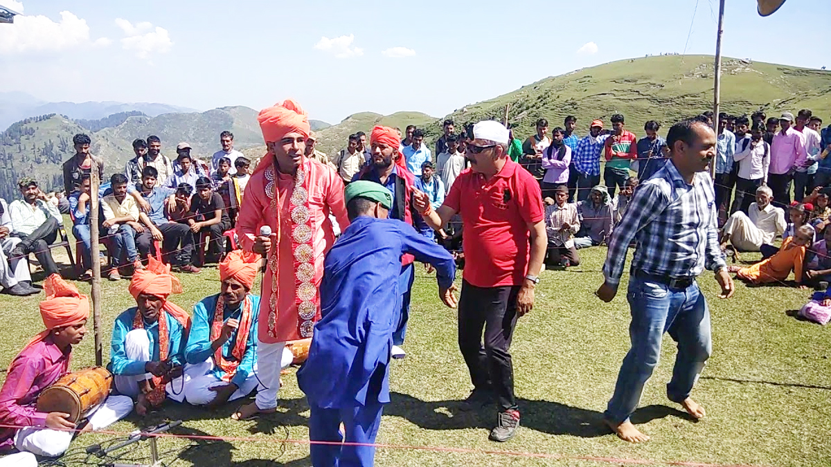 The Rural folk gathering is seen making purchases of sweets, toys, and other items from the temporary stalls at the Mela site. The male members are usually seen in kurta pajama with colourful Pagri on the head and their female counterparts are seen in bright multi-coloured suits. Various local artists, dancers and Dogri singers make the event charming. The students from nearby schools show their creativity through short skits and dance. The people sit here and there singing Dogri folk songs in small groups. Some Govt. departments highlight their policies and public welfare programmes through exhibition and straight talk etc. District Administration Udhampur takes care of sanitation, electricity, water, and security concerns of the Mela. Religious sermons are delivered during the Mela.