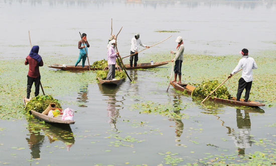 Members of Kashmir’s Lakes and Waterways Authority collect weeds lying on the surface of Dal Lake in Srinagar on Monday. -Excelsior/Amin War By Daily Excelsior - September 3, 2013 Share FacebookTwitterWhatsAppPinterestLinkedinCopy URLTelegramEmailTumblrReddItPrintKoo Members of Kashmir’s Lakes and Waterways Authority collect weeds lying on the surface of Dal Lake in Srinagar on Monday. -Excelsior/Amin War Follow our WhatsApp channel