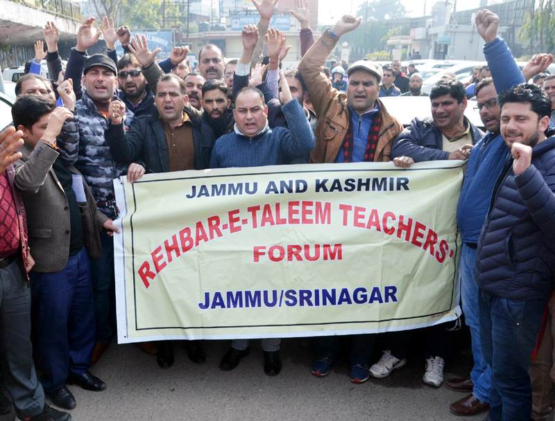 Members of ReT Forum protesting against IGNOU authorities.— Excelsior/Rakesh