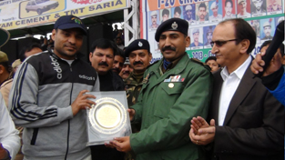 Memento being presented to International cricketer Joginder Sharma by SP Kathua, Mohan Lal during valedictory function. By Daily Excelsior - January 18, 2014 Share FacebookTwitterWhatsAppPinterestLinkedinCopy URLTelegramEmailTumblrReddItPrintKoo Memento being presented to International cricketer Joginder Sharma by SP Kathua, Mohan Lal during valedictory function. Memento being presented to International cricketer Joginder Sharma by SP Kathua, Mohan Lal during valedictory function. Follow our WhatsApp channel