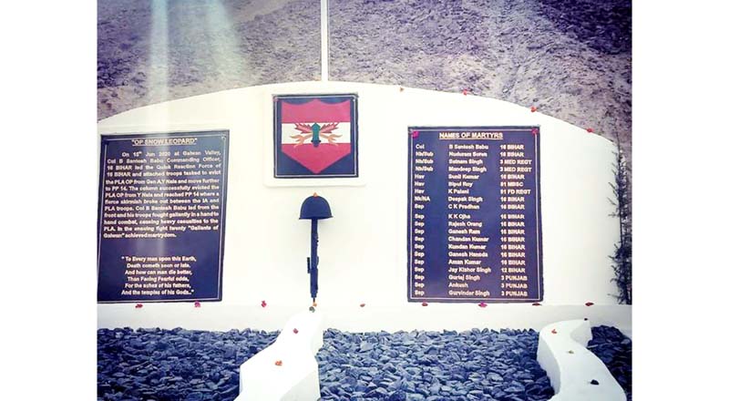 Memorial built for Galwan martyrs in Ladakh. By Daily Excelsior - October 4, 2020 Share FacebookTwitterWhatsAppPinterestLinkedinCopy URLTelegramEmailTumblrReddItPrintKoo Memorial built for Galwan martyrs in Ladakh. Memorial built for Galwan martyrs in Ladakh. Follow our WhatsApp channel