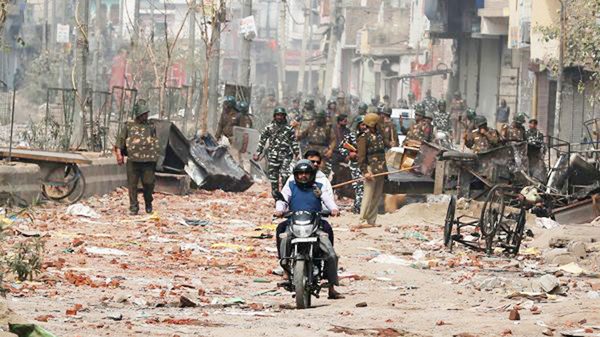 Men ride a motorcycle past security forces patrolling a street in a riot affected area in New Delhi on Wednesday. By Daily Excelsior - February 27, 2020 Share FacebookTwitterWhatsAppPinterestLinkedinCopy URLTelegramEmailTumblrReddItPrintKoo Men ride a motorcycle past security forces patrolling a street in a riot affected area in New Delhi on Wednesday. Men ride a motorcycle past security forces patrolling a street in a riot affected area in New Delhi on Wednesday. Follow our WhatsApp channel