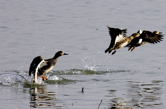 As water bodies start freezing due to decline in temperatures, migratory birds shifting towards plains in Srinagar. — Excelsior / Shakeel