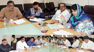 Chief Minister Mehbooba Mufti chairing a meeting at Srinagar on Wednesday.