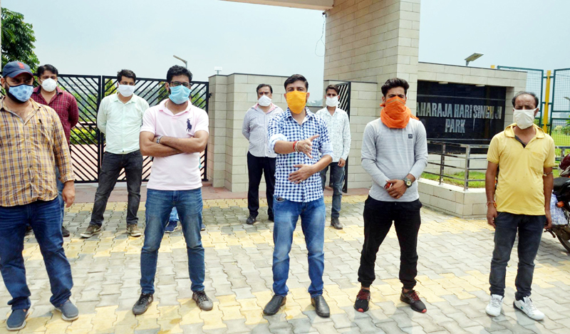 These employees assembled near Maharaja Hari Singh Park in Jammu during the day today and staged protest demonstration, demanding their permanent absorption in the Rural Development Department. They were shouting slogans against the Government and demanding regularization.