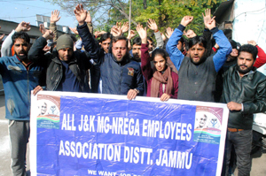 JAMMU, Dec 16: All J&K MGNREGA Employees’ Association today staged a peaceful protest in support of its demands here at Ranjeet Park.