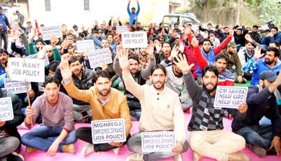 Provincial president from Jammu, Sandeep Kalotra and John Mohd from Kashmir province besides others also addressed the gathering and alleged that despite assurance by the RDD Minister to frame a definite policy for the regularization of MGNREGA workers nothing has been done so far. Many of them are highly qualified and they are going to be over aged.