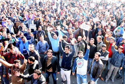 JAMMU, Dec 18: The workers engaged under MGNREGA held strong protest rally at Exhibition ground near Press Club here today.