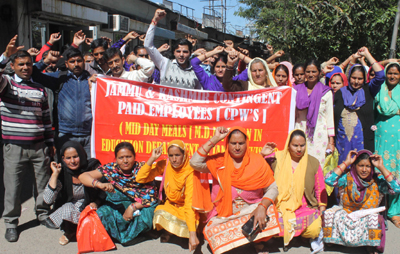 JAMMU, Mar 6: Mid Day Meals and All J&K Contingent Paid Workers (CPWs) held strong protest demonstration here today.