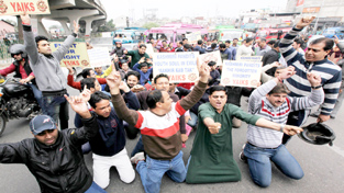 Migrant employees protesting in front of Press Club Jammu on Tuesday. -Excelsior/Rakesh By Daily Excelsior - March 7, 2017 Share FacebookTwitterWhatsAppPinterestLinkedinCopy URLTelegramEmailTumblrReddItPrintKoo Migrant employees protesting in front of Press Club Jammu on Tuesday. -Excelsior/Rakesh Migrant employees protesting in front of Press Club Jammu on Tuesday. -Excelsior/Rakesh Follow our WhatsApp channel