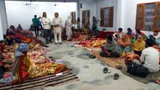 Migrants from Ramgarh sector camping at Baba Sidh Goria Ji Shrine premises at Soankha on Wednesday. —Excelsior/Gautam