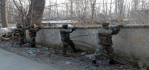 SRINAGAR, Jan 20: A Hizbul Mujahideen (HM) militant was killed in a fierce gun battle with the security forces at Naina village of South Kashmir’s Pulwama district this morning and a youth was killed in alleged security force firing while they were controlling a mob after the gun battle in which around 30 people including 17 policemen were injured.