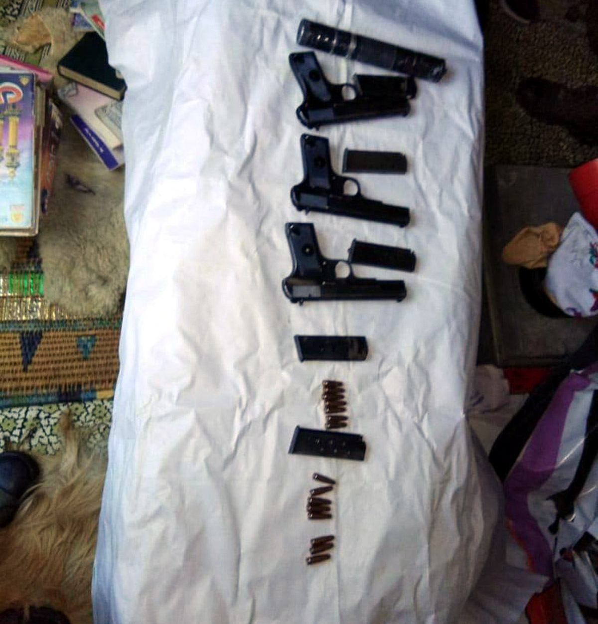 From his house, security forces recovered three Chinese pistols, five magazines, 15 rounds and one silencer.