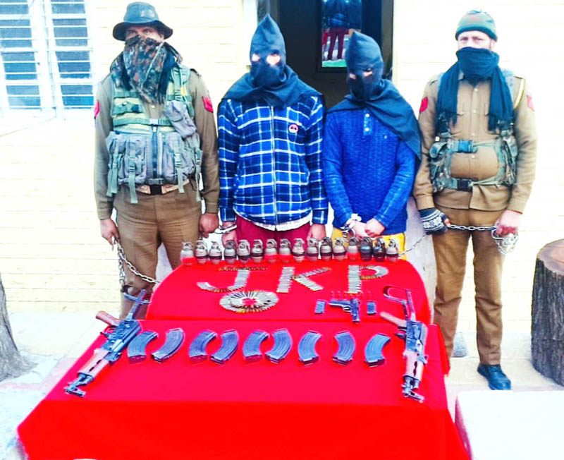 Militants arrested with arms and explosives in police custody at Ramban on Monday. -Excelsior/ Pervaiz Mir By Daily Excelsior - January 19, 2021 Share FacebookTwitterWhatsAppPinterestLinkedinCopy URLTelegramEmailTumblrReddItPrintKoo Militants arrested with arms and explosives in police custody at Ramban on Monday. -Excelsior/ Pervaiz Mir Militants arrested with arms and explosives in police custody at Ramban on Monday. -Excelsior/ Pervaiz Mir Follow our WhatsApp channel