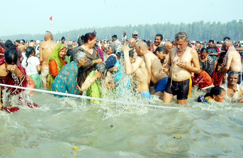 SAGAR ISLANAD (WB), Jan 14: About five lakh devotees today took holy dip in the confluence of the river Ganga and the Bay of Bengal on the auspicious occasion of ‘Makar Sankranti’.
