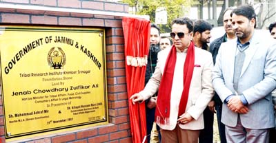 Meanwhile, Zulfkar Ali laid foundation stones for Post Graduate (Boys) Hostel for scheduled tribe (ST) students and Tribal Research Institute (TRI) at Tulsi Bagh and Khimber in Kashmir valley respectively.