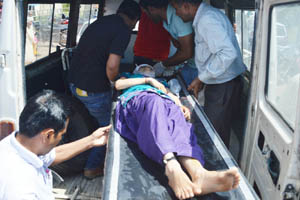 People shifting accident victim to hospital. —Excelsior/Magotra
