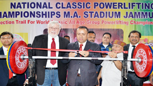 Minister for Food, Civil Suupplies and Consumer Affairs, Choudhary Zulfkar Ali inaugurating National Classic power lifting championship in Jammu.