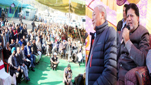Minister for Cooperatives, Chering Dorjay and Minister for Animal Husbandry, Abdul Gani Kohli during a Cooperative Awareness Camp at Rajouri.