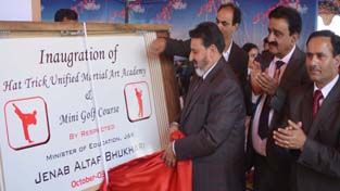 Minister for Education, Syed Mohammad Altaf Bukhari inaugurating a Sports Day function at Hat Trick Public School in Srinagar.