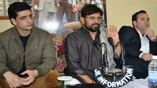 Minister for Health, Ch Lal Singh flanked by Minister of State for PWD, Sunil Kumar Sharma and MLA Doda Shakti Parihar during a meeting on Saturday.