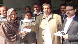 Minister for Housing Raman Bhalla distributing cheque to a beneficiary at Jammu on Tuesday.