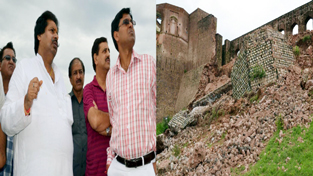 Minister for Housing Raman Bhalla interacting with officers during his visit to Bahu Fort on Saturday.