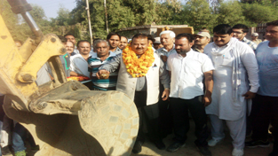 Minister for Industries, Chander Prakash Ganga kick starting up-gradation of Purmandal road on Friday. Excelsior/Gautam