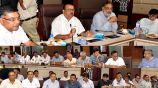 Minister for Industries & Commerce, Chander Parkash Ganga and Minister for Finance, Haseeb Drabu interacting with industrialists on Friday.