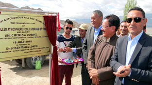 Minister for Ladakh Affairs, Chhering Dorje and others laying foundation stone of Controlled Atmosphere Storage & Cold Storage facility at Leh.