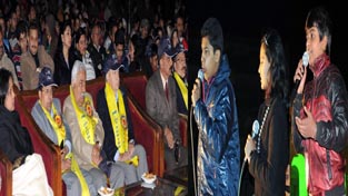 Minister for Planning Ajay Kumar Sadhotra and others witnessing a program at Jammu Festival on Friday.